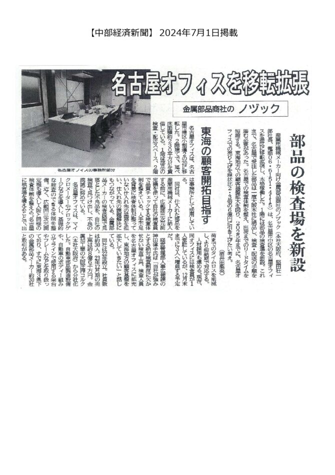 2024.07.01 お知らせ 中部経済新聞に掲載されました 令和6年7月1日(月)中部経済新聞にてノヅック名古屋事業所のインタビュー記事が掲載されました。是非ご覧ください。 ‹ 前の記事へ 記事一覧へ 次の記事へ ›